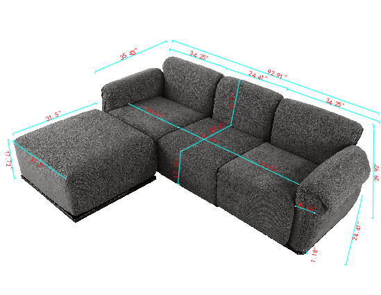 - The modular design is a standout highlight: the ottoman can be flexibly switched between the left and right sides, allowing it to be configured as either a left chaise or right chaise according to the layout of your living room and personal usage habits.